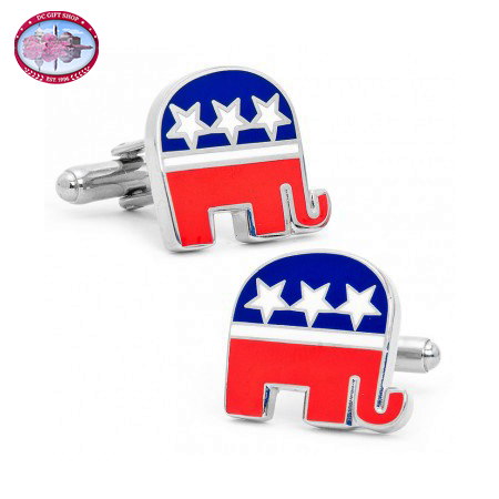 | | | Republican Elephant Cufflinks | The classic Republican Party Elephant expertly encapsulated in cufflink form. The Star, the Red, White and Blue all reflect the ideals of the GOP. Show off your political colors in style. Cufflinks by Cufflinks, Inc. Price: $50.00